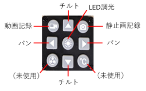 カメラ可動操作、LED調光、記録(静止画・動画)は手元のリモコンで行えます。